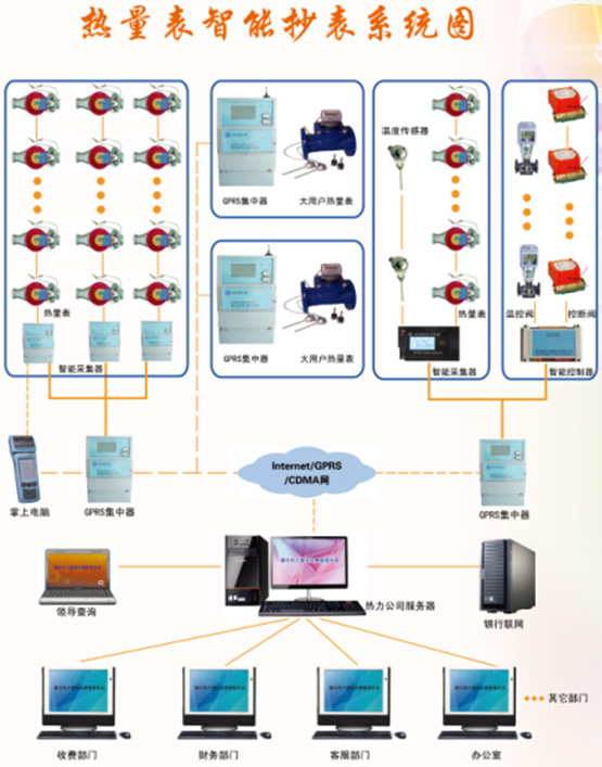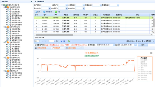 系統管理:熱表型號、廠家管理、報警條件、報警優先級顏色、分段費率、費用價格表、集中器、采集器、DTU、熱表管理、結構管理、運行參數設置、抄表時間設置等。